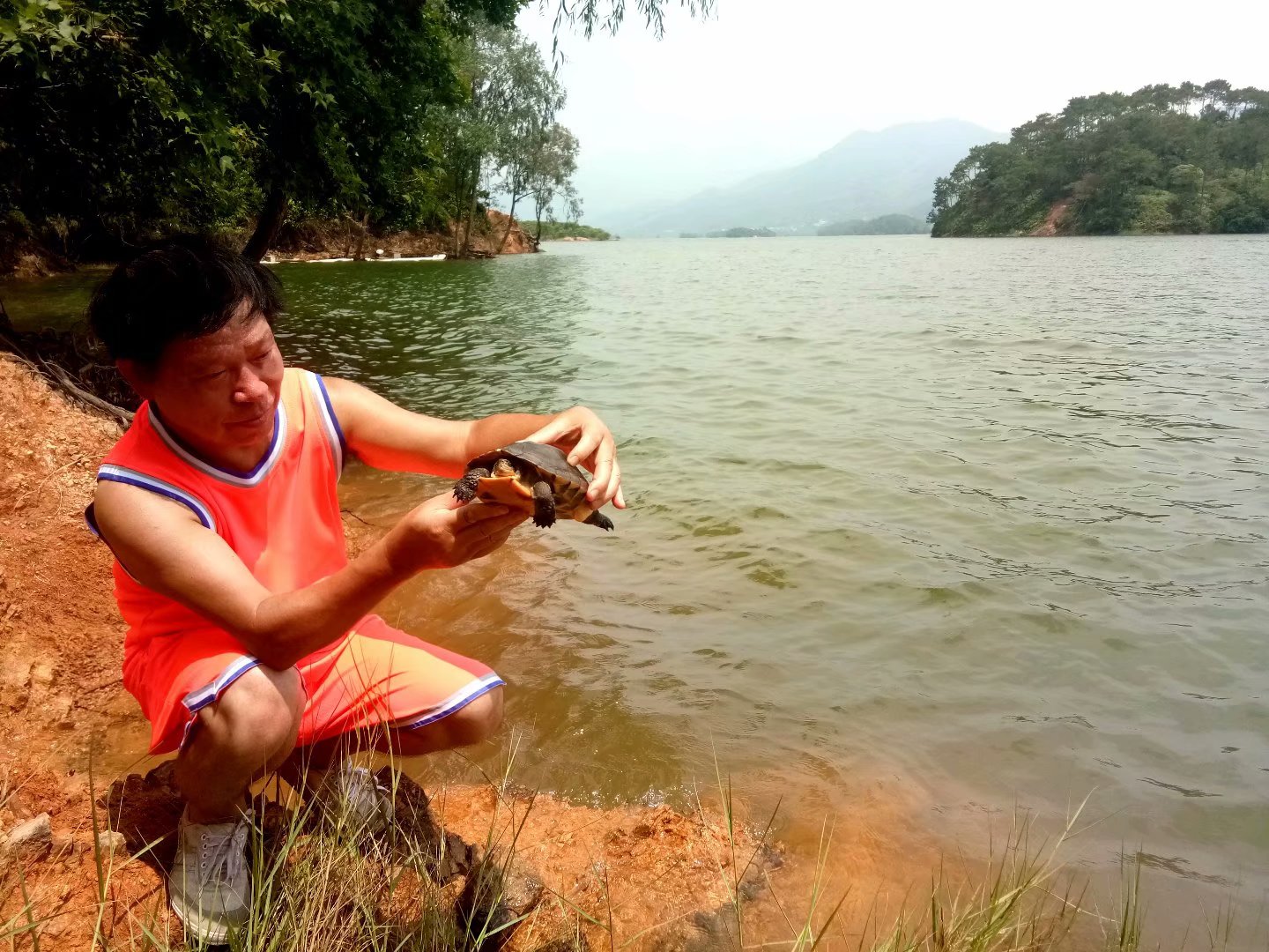 受一位信仰佛教的朋友委托,我在高州水库把一只乌龟放归大自然,见下面照片1---4: