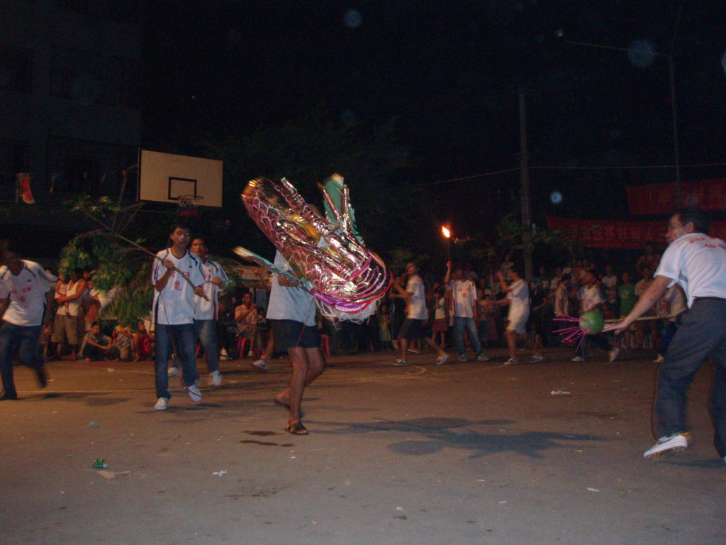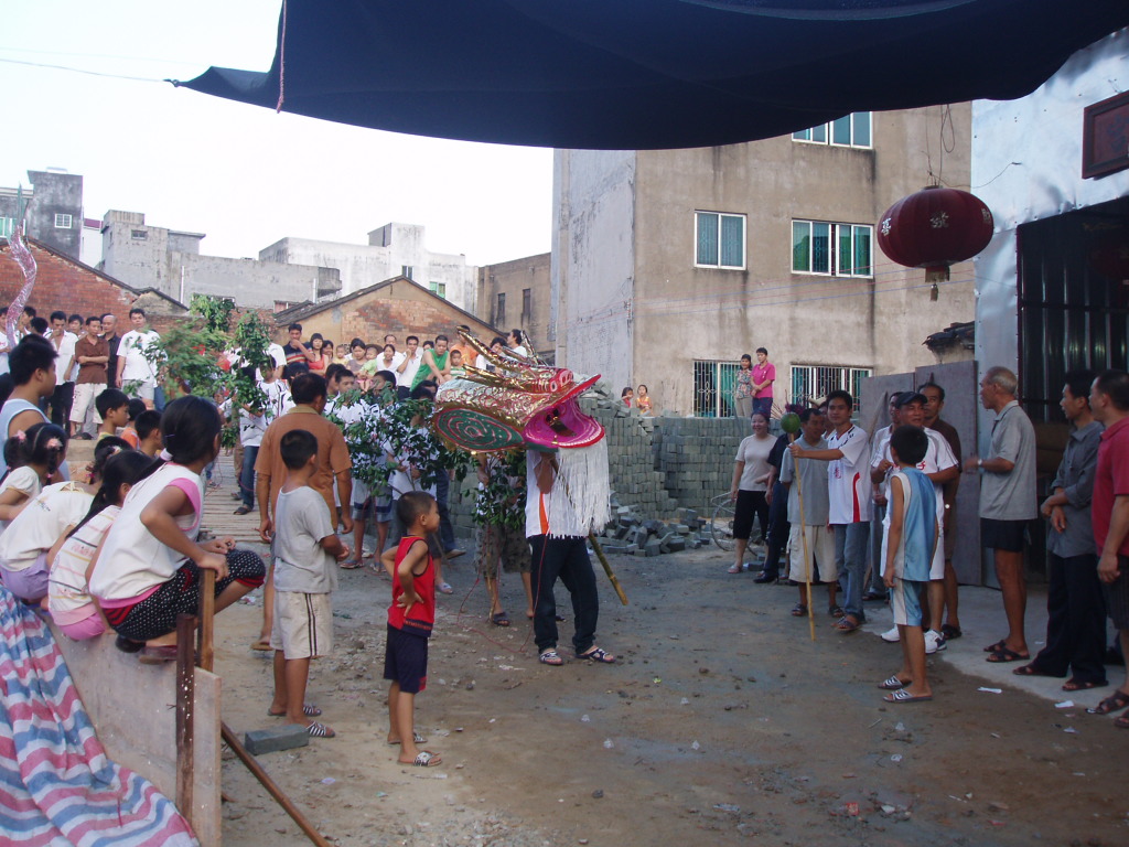 伴和着乡土风味浓烈的民间吹打乐,舞起。龙头威武壮观,银鬓玉角,光彩照人。树仔人认为树木旺树仔。所以龙身用树枝续成。柚子做龙珠在前引舞。龙头昂视、龙珠劲抖,龙身翻腾,龙尾律动。忽跃忽伏、时缓时急,如凌空飞腾,如潜海穿浪,如遨游九天。这群村民用淳朴的舞舞着血脉传承,舞着对上天的敬畏,舞着对祖辈的敬意。
