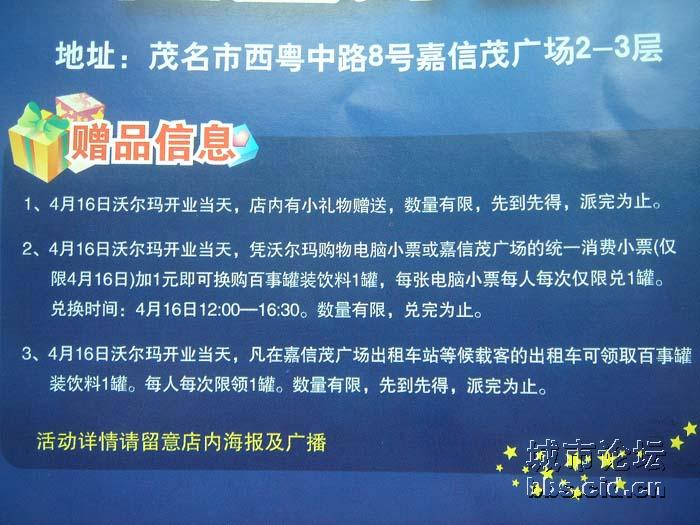 电海白鲨 大学三年级 注册 2006-07-05 消息 852 反馈评分 0 点数 0 2007-04-19 #60 QUOTE(语无言 @ 2007年04月19日 Thursday, 03:34 PM) 不错不错.这应该是确切的消息了,有谁到过了吗,东西是不是真的便宜???感觉如何??? [snapback]1728885[/snapback] 开业了四天我去逛了三次, 感觉比明湖、国成、聚佳等本地超市好很多,通道宽敞明亮,货品摆设整整有条,且讲究美感,与深圳沃尔玛的摆设同属一风格,服务员亦比较热情有礼。大部分的东西相对便宜,且很多商品本地超市是没有的。今天在那买了一台四件套的果汁机才169元,因买的东西较多,服务员还亲自帮我推购物车到外面我停车的地方,不错。 附件 2.jpg 45.7 KB · 查看: 203 4.jpg 55.7 KB · 查看: 218 5.jpg 70 KB · 查看: 189 6.jpg 72.1 KB · 查看: 188