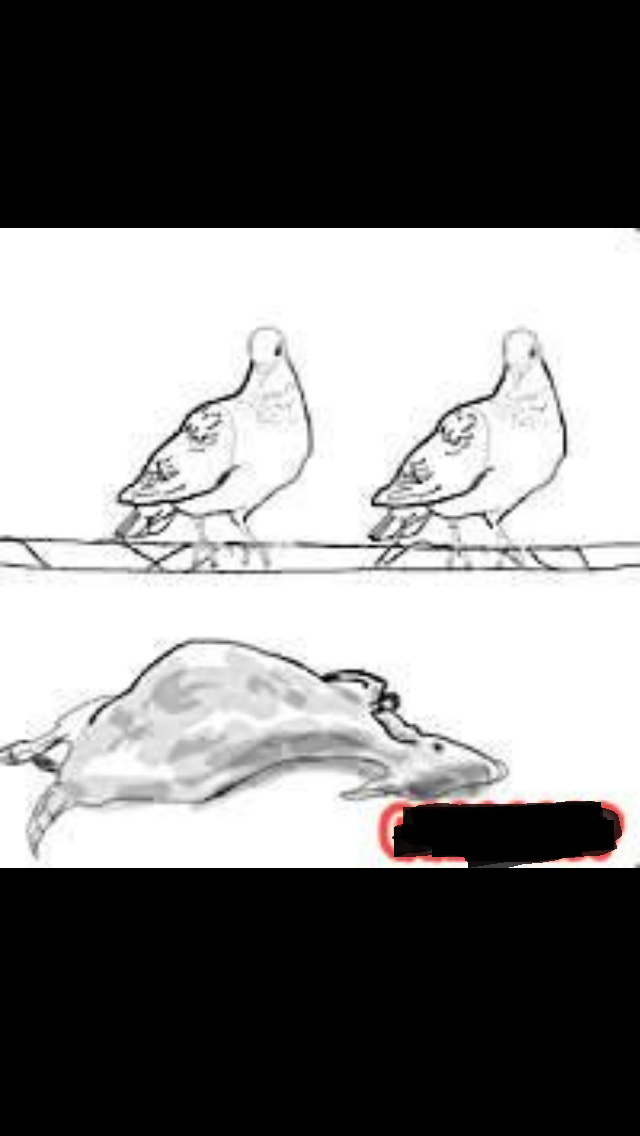 上面两只鸽子,下面躺着一只死羊