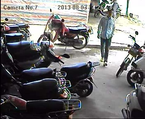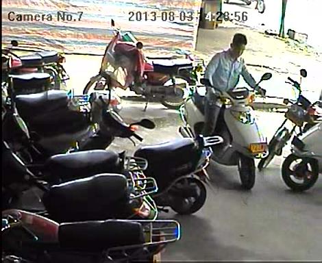 前些天,电城某饭店停放在门口的崭新五羊本田摩托车被盗,监控记录下来盗贼的偷车全过程,此视频为翻拍影像,所以不清晰,下面提供些图片给大家看看,认识此贼的老乡可以与公安机关联系,或者联系失主13543354688,提供此贼信息者奖励2000元。